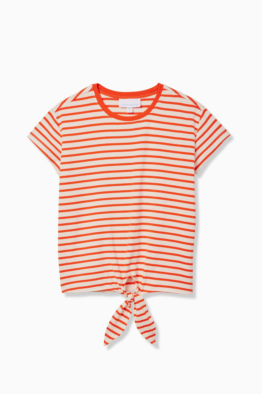 Our Cabana Stripe Tie Top is ready for fun! Featuring a super cute tie front detail, this soft tee is cute AND comfy. Pair with the matching Cabana Stripe Skirt for a look she'll love all day!