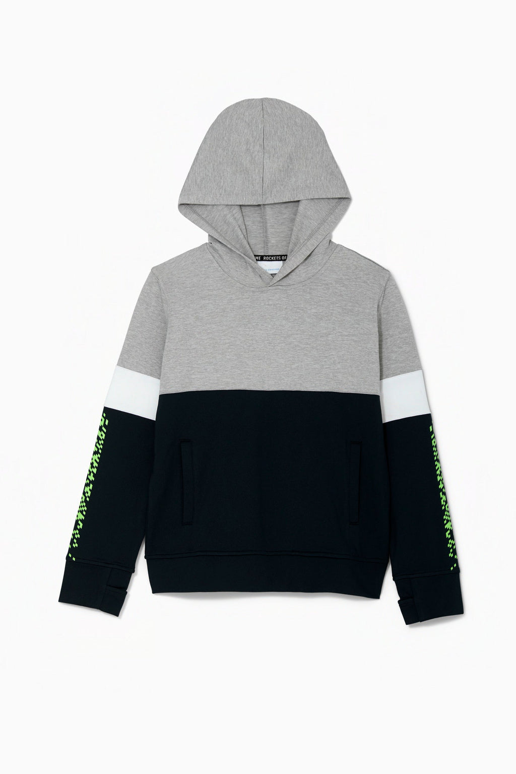 Pop goes the neon! This colorblock active hoodie is a great addition to any wardrobe, featuring a colorblock design and handy thumbholes. He'll wear it on top of his favorite outfit, or pair with our Racing Stripe Joggers and Game On Mesh Active Tee to complete the look!