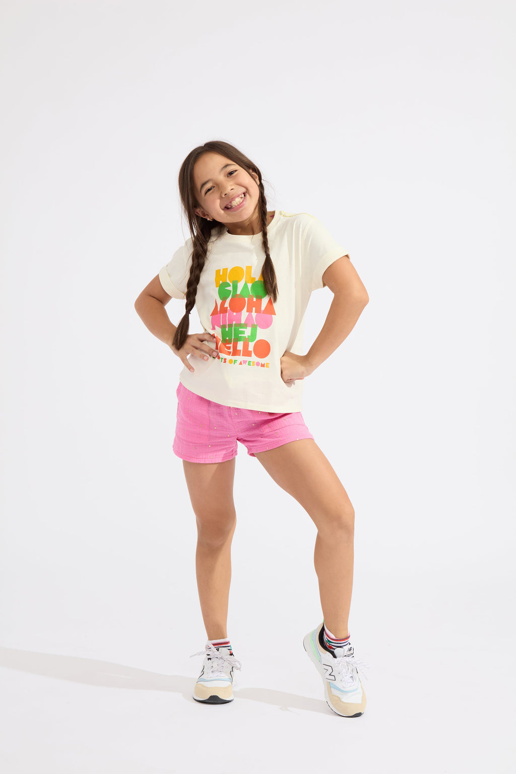 Sparkle all day in our Galaxy Cinch Short! 🌌 With gold metallic puff prints and a drawstring waist, you'll always stand out in these!