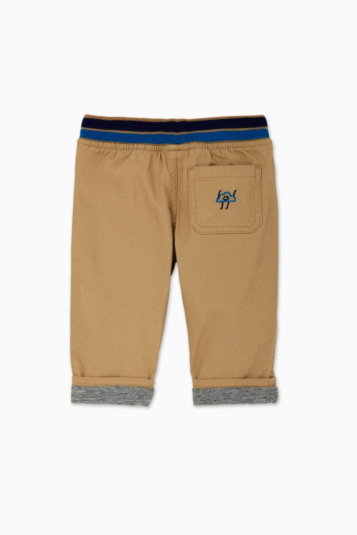Meet Minis first khakis. These super stretchy, pull-on khakis are perfect for fuss-free outings. They pair perfectly with the Mini Super Soft Stripe Sweater and the Mini Easy Plaid Bodysuit. Take a peak at our cute cloud mascot on the behind.